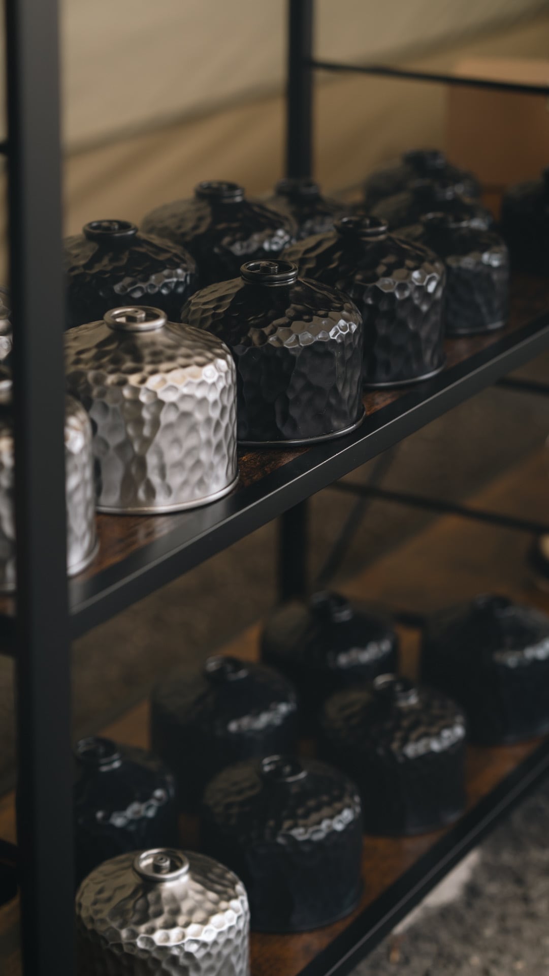 ※長いですが、最後までお読みになり、注意事項等を理解した上でのご購入をご検討ください。 ・本製品はOD缶のリメイクとなるため、カバーではありません。 ・ハンドメイドのため、2つとして同じものはございません。 ・NAMELESS STAND以外のパーツは付属いたしません。 【素地-SOJI-】 ステンレスのような風合いですが鉄製品です。エイジングも楽しんで頂きたいため、防錆加工はしておりません。潮風も錆を促進する要因となりますので沿岸部にお住まいの方はご注意ください。薄く出てきた赤錆程度であれば付属のメラミンヤスリで擦ればほとんどの場合、錆を除去できます。 メンテナンス性とデザイン性の側面から研磨傷や打痕もそのままにしています。 【BLACK】 化学反応により四酸化三鉄という黒錆を纏ったモデルになります。表面はwoodfoodオイルでコーティングしておりますが、オイルが乾いたまま放置すると錆びてきます(オイルコーティングをしていても錆びる事もあります) 錆がでたら取り除く手段がなく再加工もできかねます。錆の具合にもよりますが、錆をキッチンペーパーなどで拭き取りオイルを塗って頂けるとある程度、目立たなくなると思います。 ※錆び取り剤の使用、研磨等の行為は黒錆の剥がれ、変色の原因になりますので自己責任でお願いします。 【共通事項】 ・鉄と木と水が反応すると木製製品に輪染みができる可能性があります。 ( 本製品から水分が出ることはありませんが、湿気等で水気を帯びる可能性があります。) 木製製品に置かれる場合はコースター等の利用を推奨します。 ・鉄製を叩いて整形しているため角が存在します。剥き出しのままコンテナ等に入れると他のギアを傷つける、NAMELESS STAND自体に傷がつく可能性がございます。気持ち程度の対応ですが、発送時の不織布を保護材としてご活用ください。 ・商品写真はご利用のモニター、スマートフォンで見え方が異なります。 ・お客様都合(イメージが違ったなど)での返品交換は対応いたしません。 不明点はお気軽にInstagramにDMをお願いいたします。